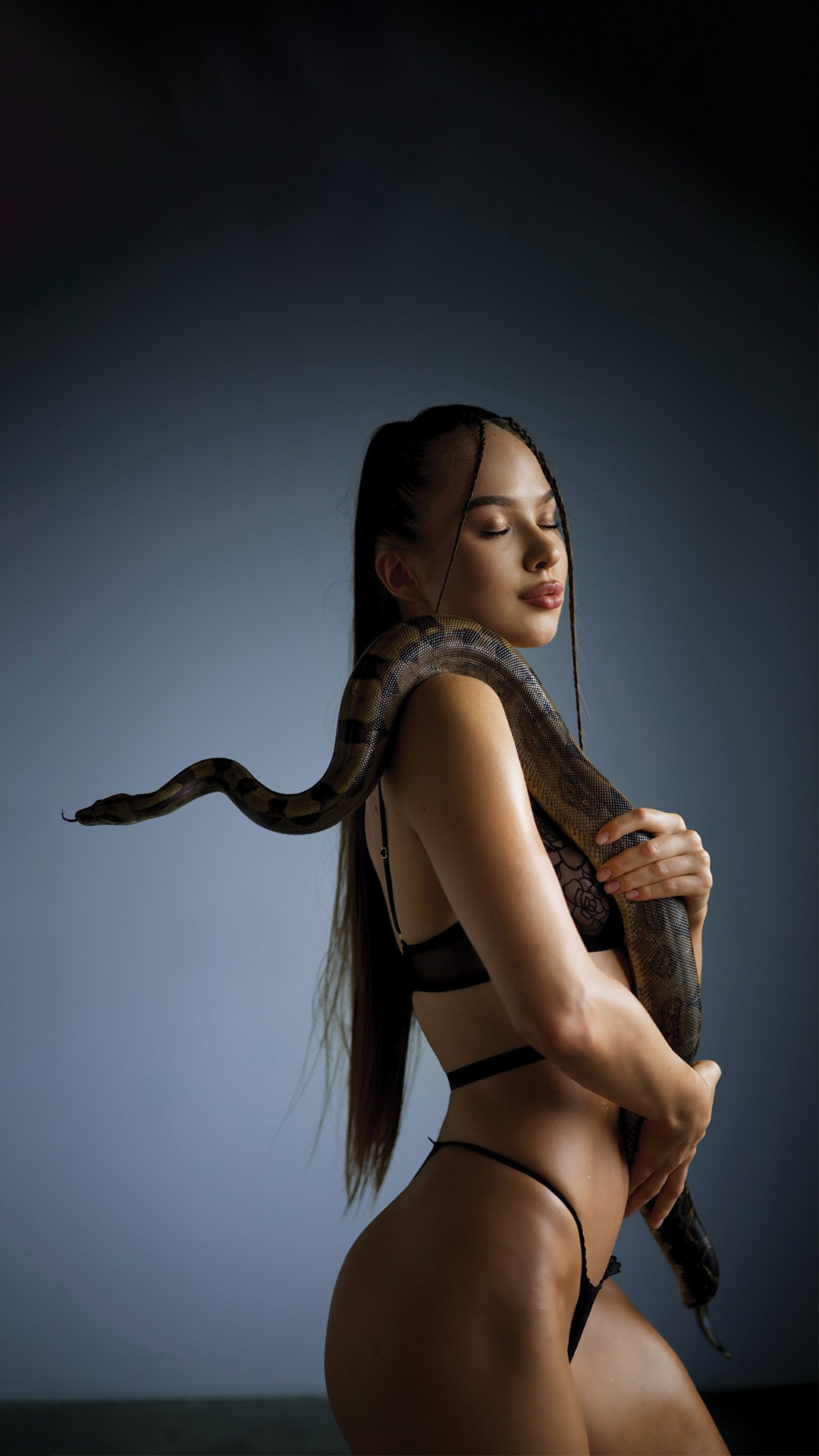 Я сотрудничаю с фотографами, студиями, моделями и креативными командами, обеспечивая присутствие змеи в кадре, контроль ситуации и комфортную работу на площадке. Все змеи полностью социализированы и привыкли к студийному свету, камере и контакту с человеком.